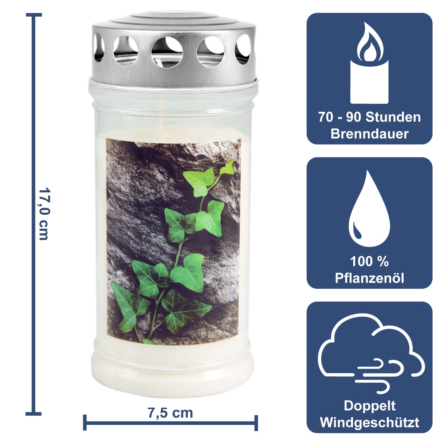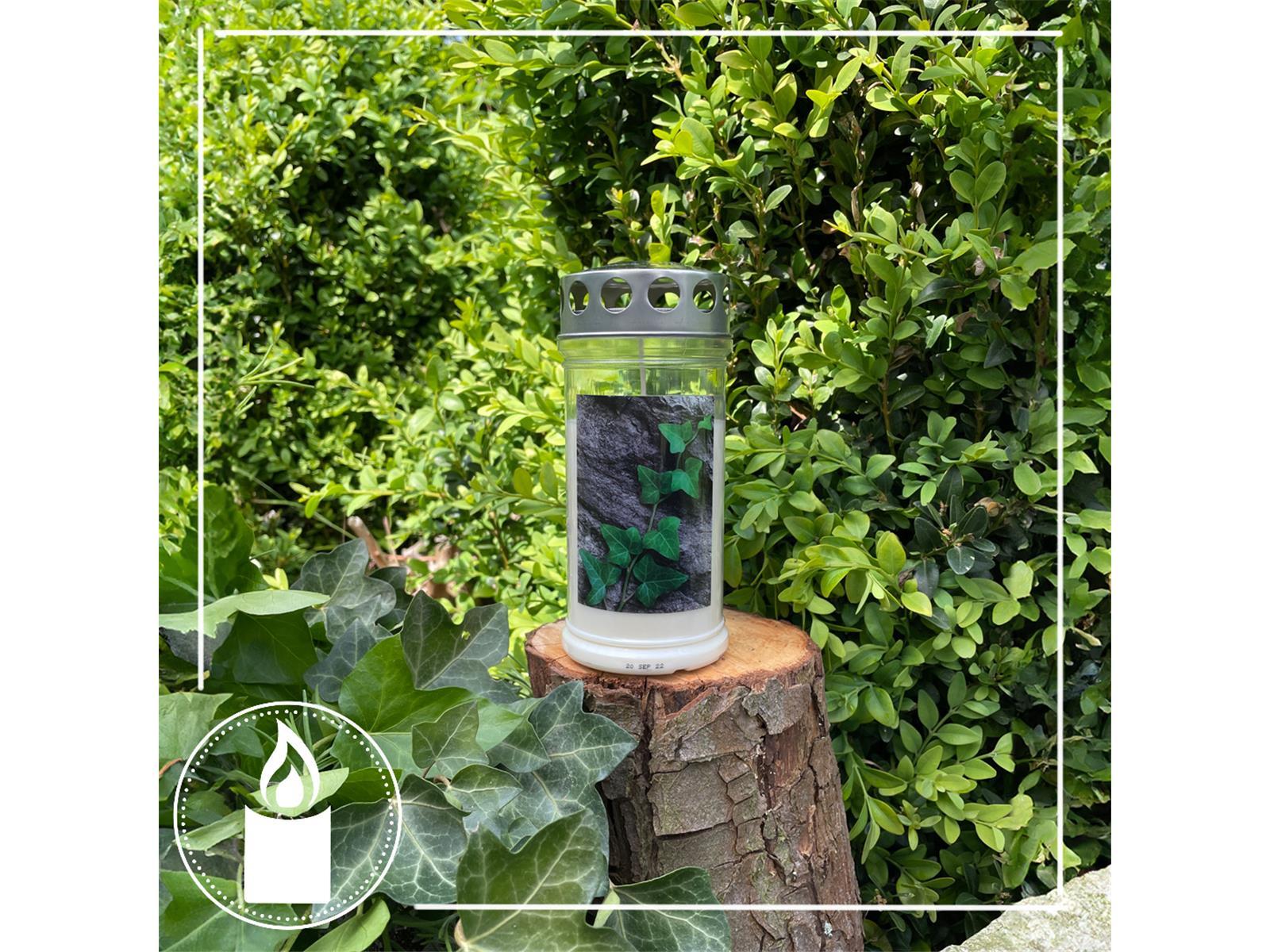 Grabkerze - Gedenkkerze Motiv "Efeu auf Stein"